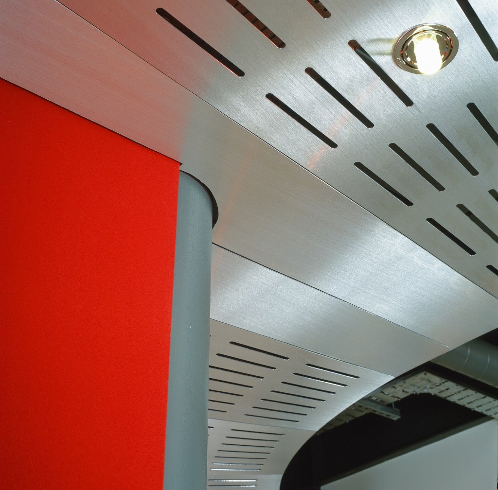 Typically applied to flat aluminium sheets, satin brushing is often used in applications where panels are out of reach – such as ceiling tiles or high-level cladding – due to the finish’s tendency to show fingerprints if left unsealed.