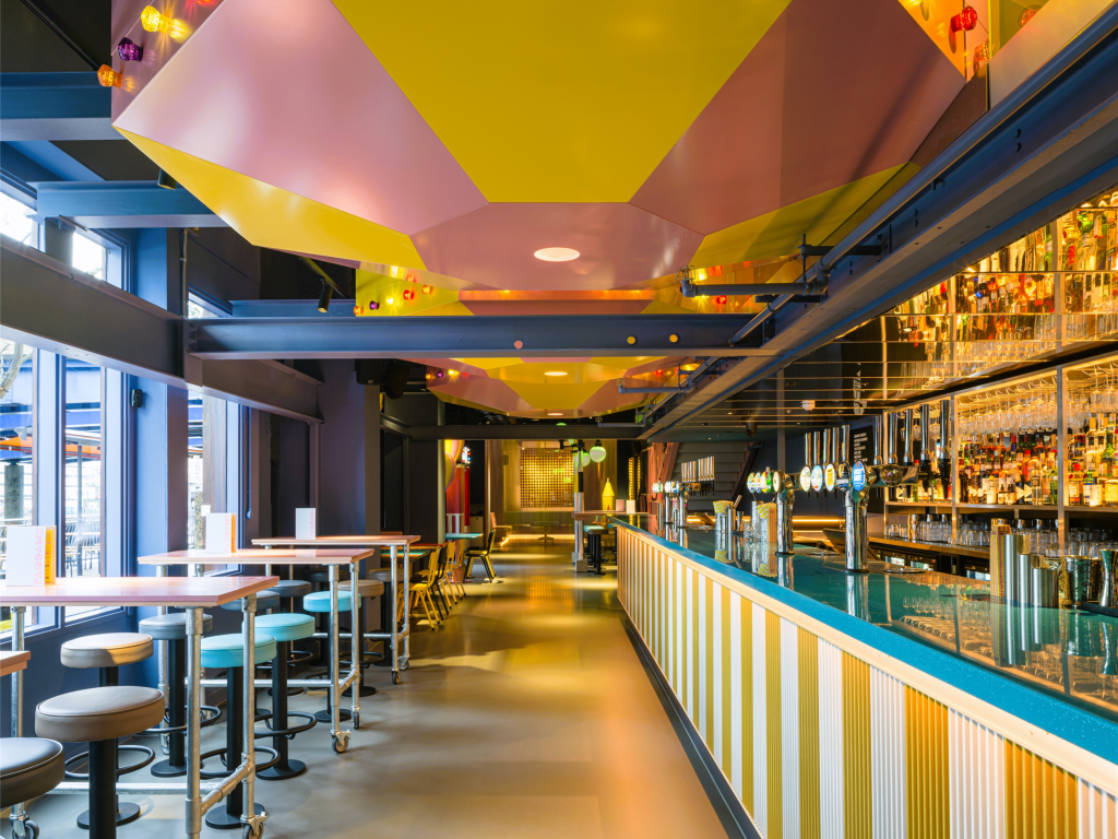 This bold, playful independent bar and events venue used Simplicity panels in alternating RAL powder-coated colours to great effect across bar and counter fronts. The vibrant finish brought depth and energy to the space, while the corrugated profile added subtle movement and texture. (The GA blog recently posted about the pros and cons of aluminium surface finishing options here.)
