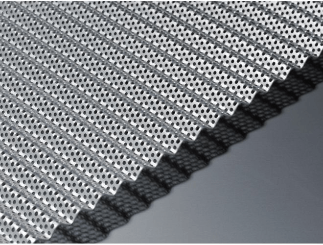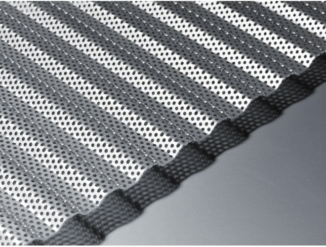 For designers looking to add dynamic yet minimalist elements, corrugated perforated aluminium panels can soften artificial lighting, control sound, and improve spatial flow.